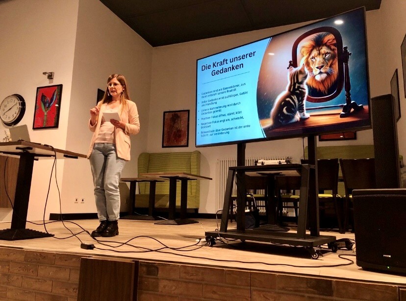 Ein weiterer Schwerpunkt des Vortrags lag auf der Rolle von Gedanken und innerer Haltung im Alltag. Viktoria Pavlovic machte deutlich, wie sehr innere Überzeugungen und Denkmuster das eigene Erleben beeinflussen können. Anhand einer kurzen, einfachen Übung lud sie die Zuhörer dazu ein, die Wirkung der eigenen Gedanken bewusst wahrzunehmen. Die Übung veranschaulichte, wie eng Gedanken, Wahrnehmung und inneres Empfinden miteinander verbunden sind und regte dazu an, achtsamer mit der eigenen inneren Ausrichtung umzugehen.
